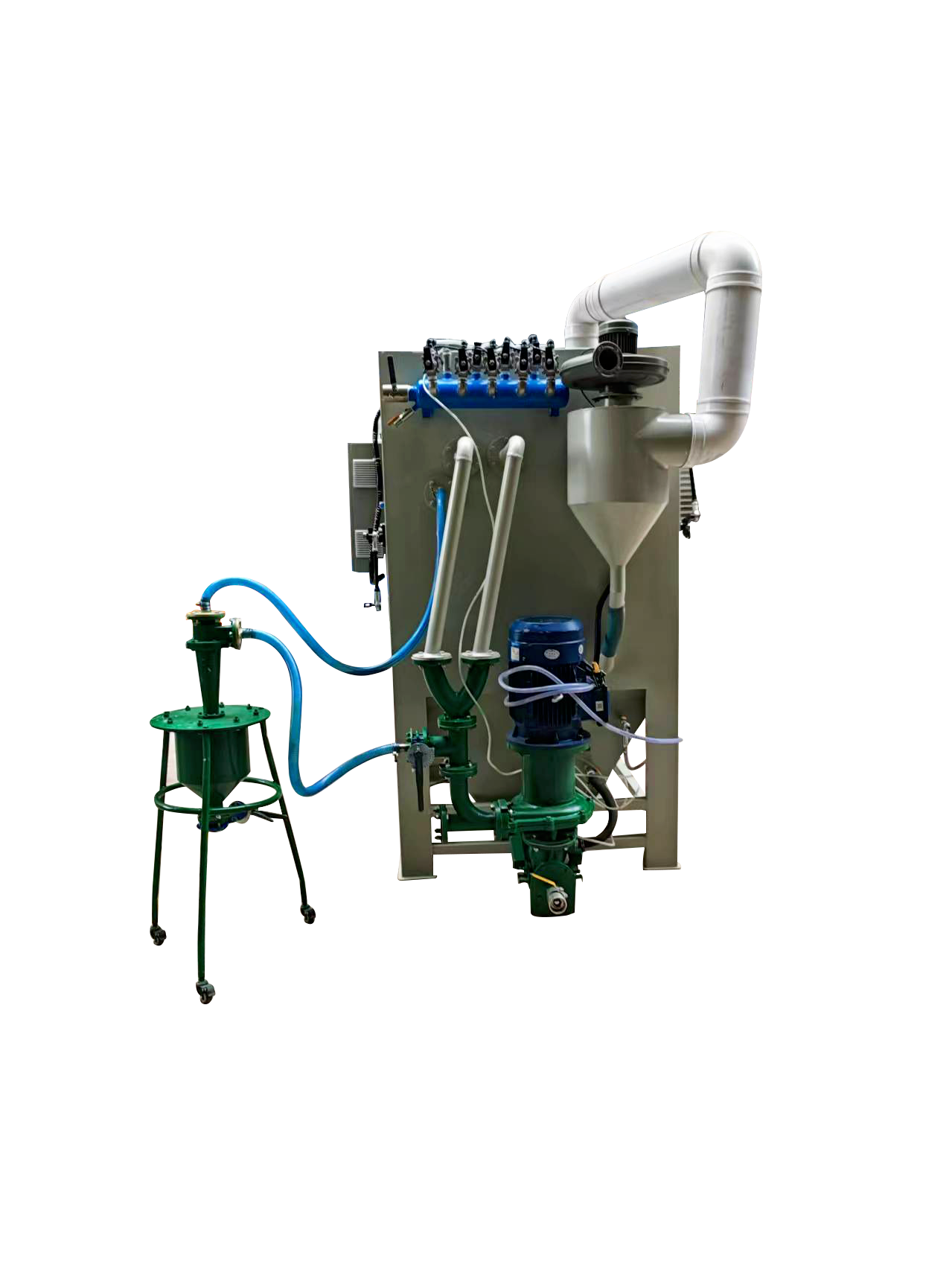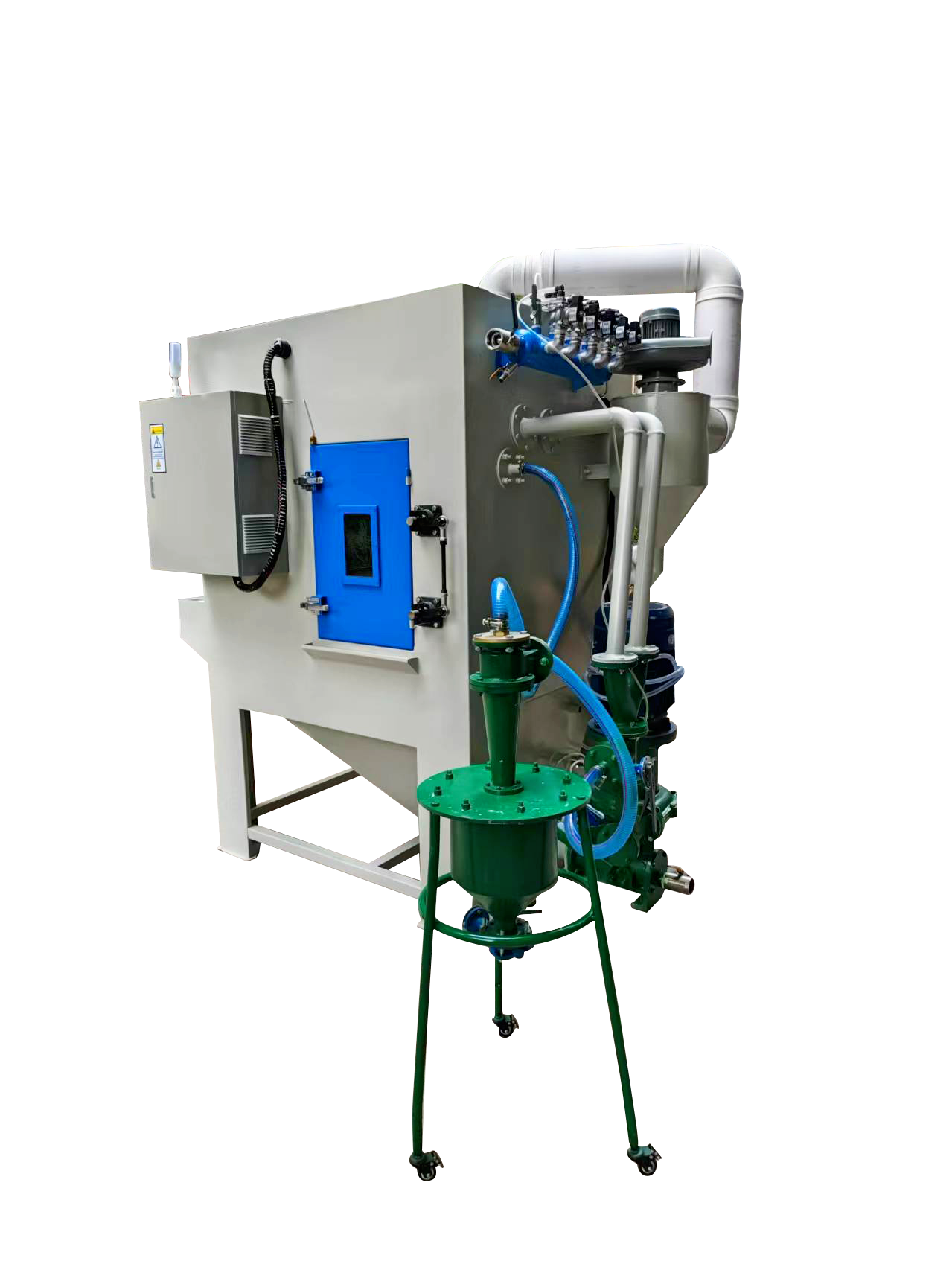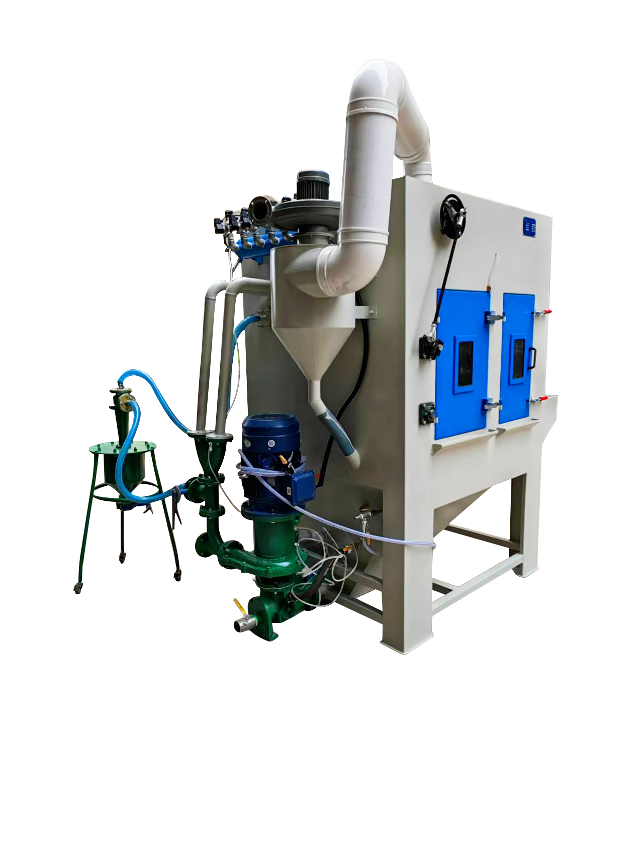 3, 配置專(zhuān)業(yè)的砂水泵,能高效混合磨料,噴砂后的產(chǎn)品手感更細(xì)膩、光澤度更好,和干式噴砂效果有明顯區(qū)別;
