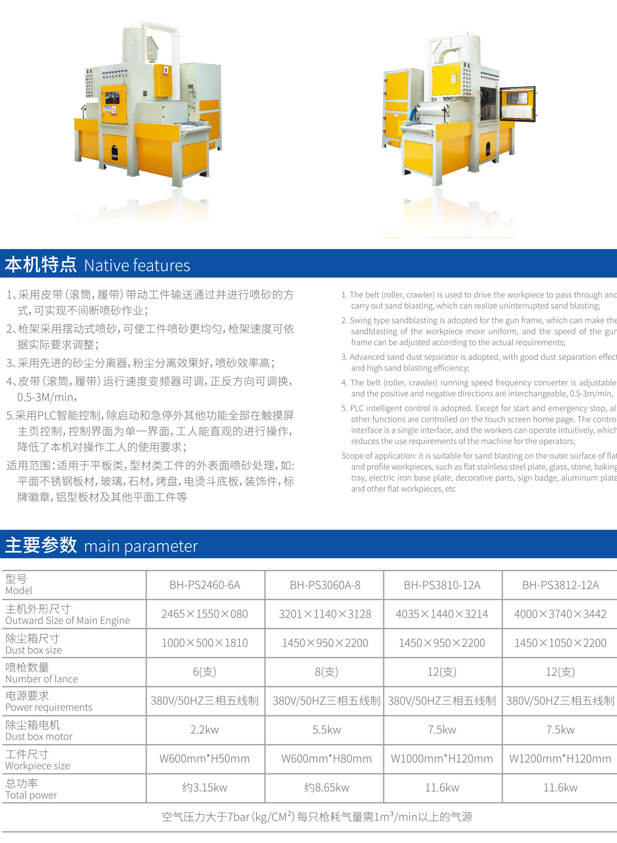 BHPS-3060-8A輸送式自動噴砂機(jī)參數(shù)及適用范圍